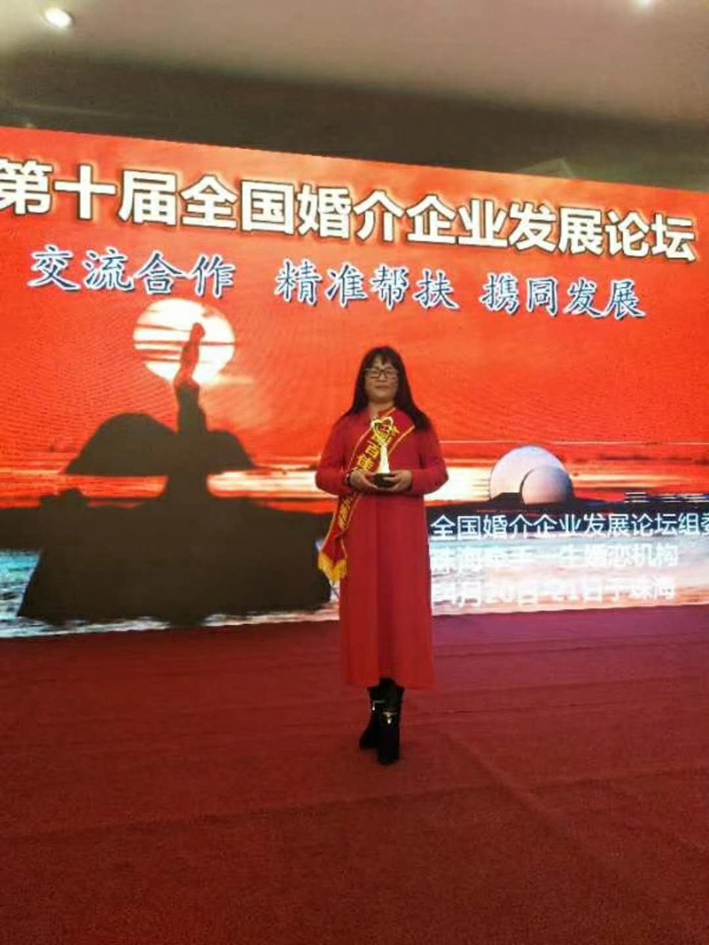 2018年4月19日-21日我公司劉總及夏經理在珠海參加第十屆婚介論壇,并獲得全國百佳紅娘稱號
